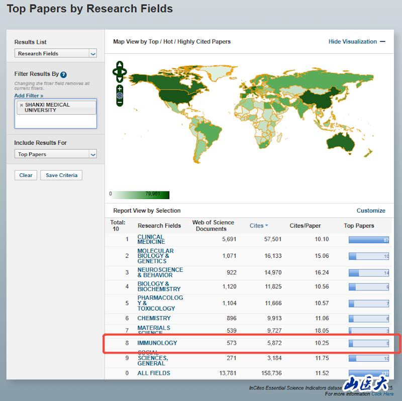 我校免疫学学科首次跻身ESI全球前1%