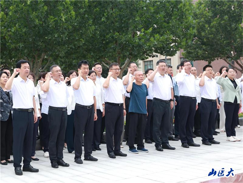 仪式上,王军、解军、胡文庆和王璐共同为雕像揭幕。解军和王璐为雕像敬献了花篮。参加仪式的师生医护在雕像前重温医学生誓言,以增进人民健康福祉为使命与担当,用奋斗践行这份光荣的承诺。