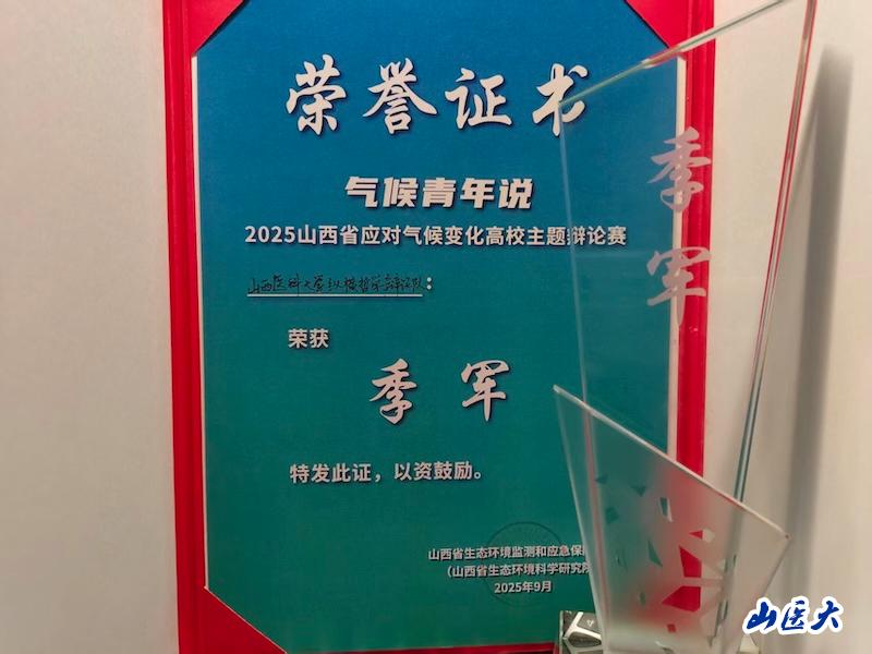 近日,2025“低碳中国行”暨气候行动周活动(山西站)的重要项目——“气候青年说·2025山西省气候变化高校主题辩论赛”决赛在山西师范大学圆满落下帷幕。我校学生社团纵横哲学社斩获大赛季军,其中纵横哲学社成员2023级药学专业朱炫烨、2023级法医学专业赵天鸿荣获单场最佳辩手称号。