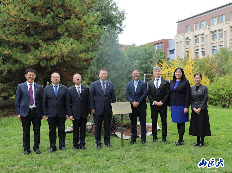 签约仪式后,两校校长共同种下象征友谊与合作的松树,寓意双方合作如松柏般坚韧、如树木般向阳生长,将持续扎根医学教育领域,结出惠及师生与医疗卫生事业的成果。访问期间,代表团还参观了生命科学馆、图书馆和创新创业学院,高度赞扬了学校医学人才培养、科研平台建设成果。