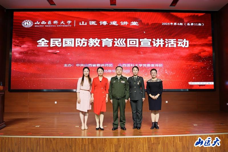 为持续传承红色基因、学思践悟中国共产党人精神谱系,弘扬爱国主义精神、增强全民国防意识,10月29日,由山西省委讲师团和我校党委宣传部共同主办的“山医博邃讲堂”2025年第四期全民国防教育巡回宣讲专场活动在中都校区教学办公楼学术报告厅举行,5位来自不同地区、不同岗位的宣讲员为300余名师生代表带来了一场兼具思想深度与情感温度的国防教育课。校党委常委、副校长武志芳主持宣讲活动。