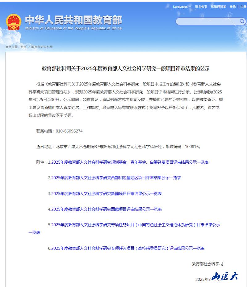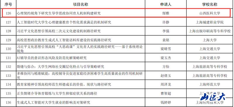 9月25日,2025年度教育部人文社会科学研究一般项目评审结果公示,我校专职思想政治辅导员郜雅主持的《心理契约视角下研究生导学思政协同育人机制构建研究》获批2025年度教育部人文社会科学研究专项任务项目(高校辅导员研究)。