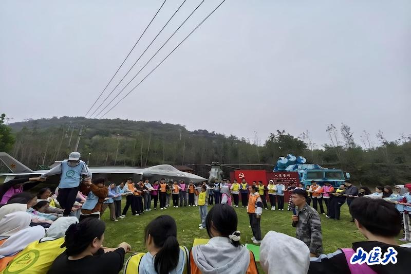 聚焦团队协作能力培育,营地开营仪式后,“有品质的活动” 有序展开。“动力圈” 活动中,新生围成圆圈整齐发力摇动绳索,形成稳定绳圈后,同学可在绳圈上行走,在协作中强化凝聚力与信任感;“桃花朵朵开” 游戏环节,根据指令快速组队、互动配合,在轻松氛围中提升应变能力与团队协作意识。活动间隙,组织者详细解读团建流程设计思路与贾家庄研学路线价值,帮助全体新生明晰活动育人目标,推动实践体验向思想认知转化。