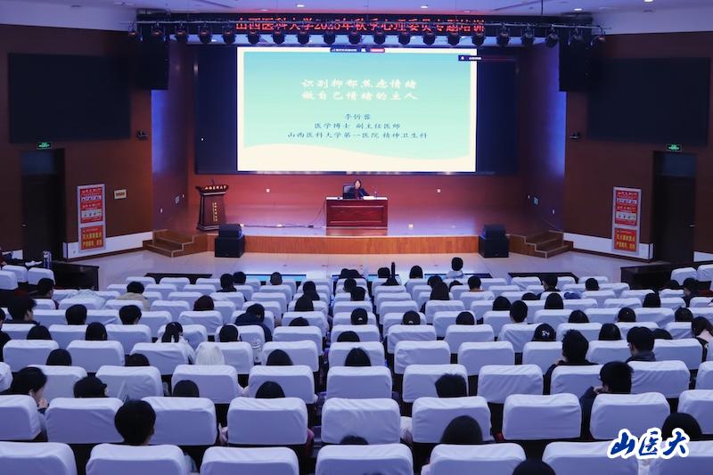 11月6日晚,学生工作部心理健康教育中心在中都校区教学办公楼一层报告厅开展了全校心理委员专题培训,同步线上直播。山西医科大学第一医院精神卫生科副主任医师、硕士生导师、医学博士李忻蓉以《识别焦虑抑郁情绪 做情绪的主人》为主题进行培训。全校心理委员及心理健康教育中心教师参加。