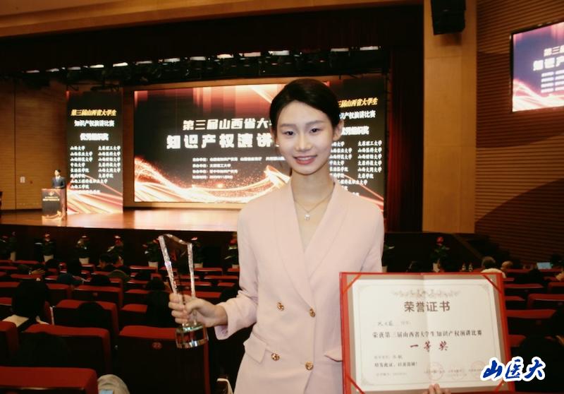 11月8日,第三届山西省大学生知识产权演讲比赛总决赛在太原理工大学圆满落幕。我校基础医学院精神医学专业学生巩文蔚凭借精彩的演讲内容和扎实的专业素养,从全省众多优秀选手中脱颖而出,取得总决赛第一名,我校同时荣获优秀组织奖。