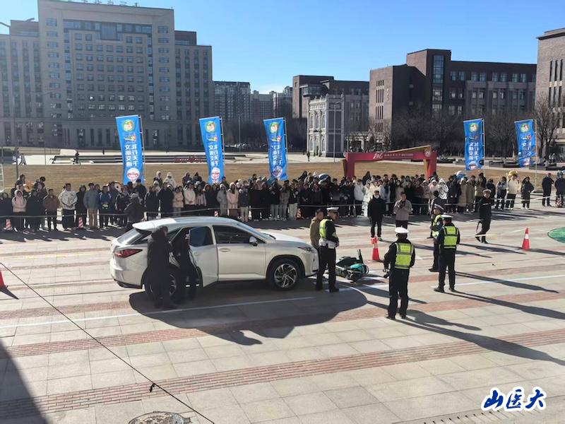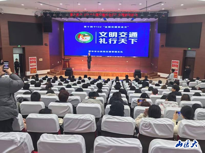 在第十四个“全国交通安全日”来临之际,12月2日上午,晋中市公安局交管支队联合共青团晋中市委在我校举办以“文明交通 礼行天下”为主题的交通安全宣传活动。校党委常委、副校长武志芳,共青团晋中市委副书记王敏,晋中市公安局交管支队党委书记、支队长杨玮出席活动。学校相关部门和院系负责人,思想政治辅导员和学生代表参加了活动。