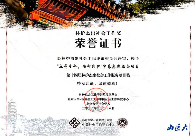 喜讯!我校宁养志愿服务项目荣获“第十四届林护杰出社会工作服务奖”