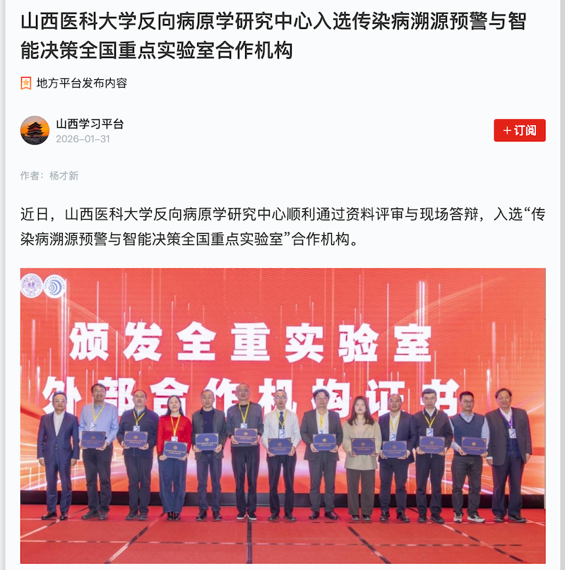 学习强国 | 山西医科大学反向病原学研究中心入选传染病溯源预警与智能决策全国重点实验室合作机构