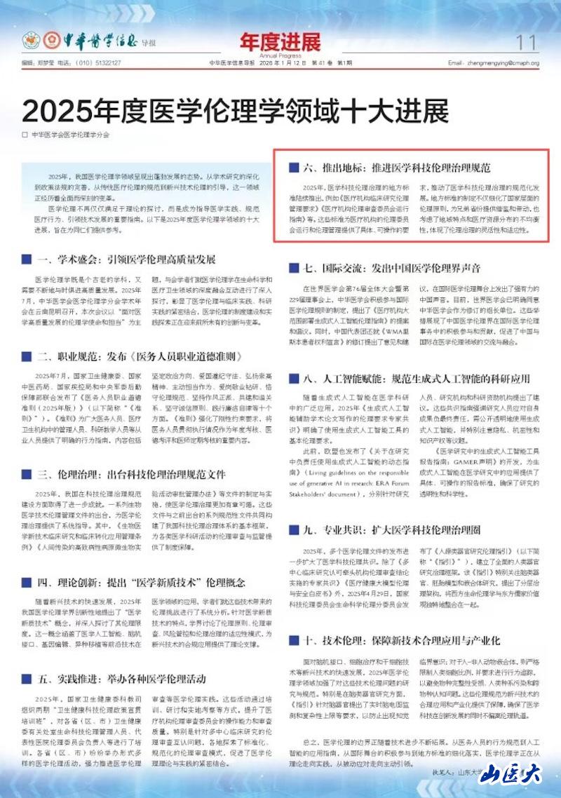 我校附属第二医院牵头制定的医学伦理地方标准入选2025年度医学伦理学领域十大进展
