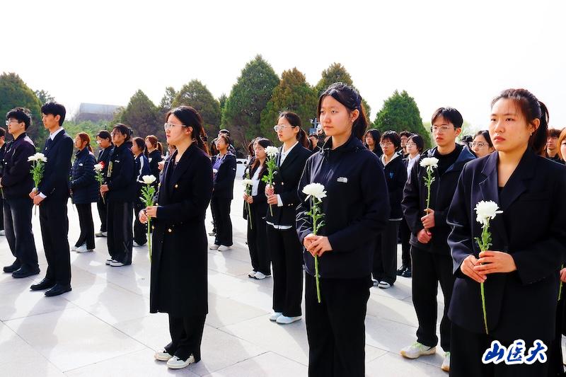 上午九时,全体人员怀着崇敬之心,肃立在烈士纪念碑前,向为民族独立、人民解放英勇献身的革命先烈默哀致敬,随后有序上前敬献鲜花,寄托对先烈的深切缅怀与崇高敬意。药学院学生冯兰博为先烈致悼词,表达全体学生对先烈的缅怀之情和恪守医者誓言的坚定决心。张瑾在发言中向革命先烈致以深切告慰,同时寄语山医学子将缅怀之情转化为勤学苦练、锤炼医术的实际行动,用医者仁心守护人民健康,用青春力量续写先辈荣光。