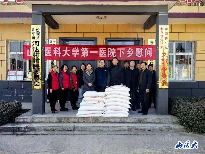1月23日,我校附属第一医院副院长施熠炜和人力资源部负责人等赴汾西县和平镇河达村开展春节前走访慰问活动,汾西县副县长梁虎生带领乡镇相关部门负责人参加。