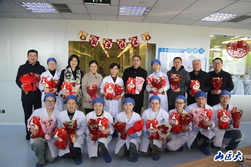 万家灯火辞旧岁,医者仁心守新春。农历大年初一,在万家团圆之时,我校附属第一医院正常开诊,医护职工坚守岗位,院领导惦念于心。2月17日一大早,院党委书记徐钧、院长周芸、纪委书记丁晖,副院长贾红燕、姜增誉、施熠炜、郭庚等一行来到临床科室、病房和值班室,看望慰问春节期间奋战在一线的医务人员,为他们送上新春祝福和暖心关怀。