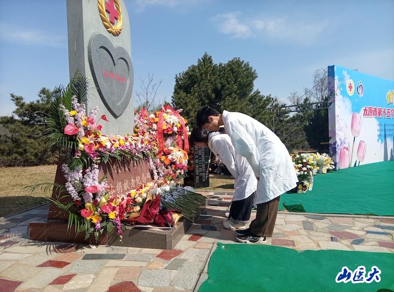 为缅怀遗体捐献者的无私奉献,弘扬人道主义精神,4月1日上午,由太原市红十字会、太原市民政局等单位主办的太原市第十五个遗体捐献纪念日活动在天龙山仙居园太原市遗体捐献纪念园隆重举行。我校团委挂职副书记丁云鹏,基础医学院实验室主任张忠和党支部书记赵云鹤,校志愿者服务总队学生代表参加此次活动,共同向大爱无言的遗体捐献者致以崇高敬意与深切追思。